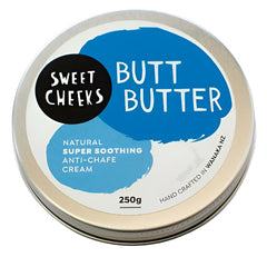 A natural anti-chafing cream for all athletes. Soothing and antiseptic, it helps to prevent chafing, blisters and sores when biking, running or swimming. Apply Butt Butter before you exercise to any spots that rub or are irritated. Because it is Beeswax based, it is safe to use with wetsuits and stays on the skin even in wet conditions.